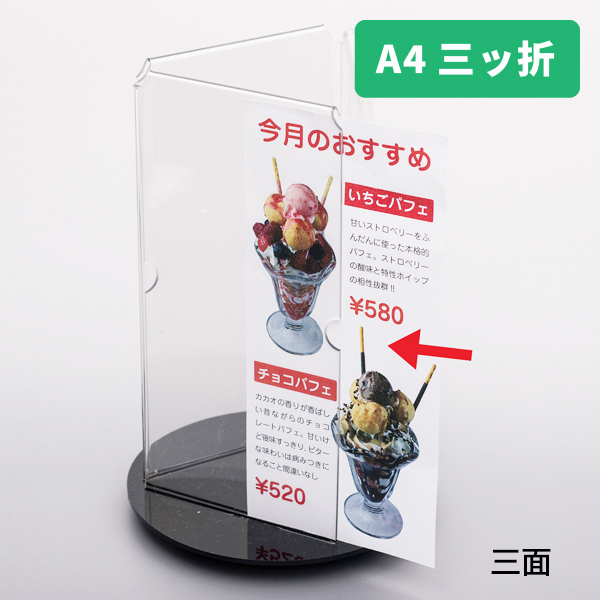 タ−ンメニュ−スタンド A4三ッ折 三面