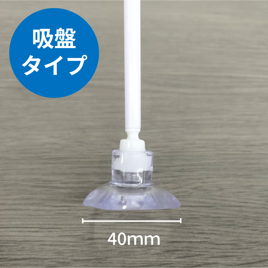 ミニのぼり旗専用の吸盤式仕様ポール(120×440mm)の商品ページです。設置部分が吸盤式になっているので、平面上に固定し風や接触で落下防止しにくいことが特徴です。適応のぼり旗のサイズはW80~100mm×H360mmです。