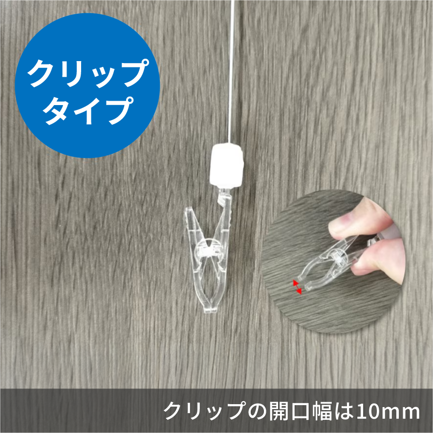 ミニのぼり旗専用の透明クリップ仕様ポール(W110×H350mm)の商品ページです。設置部分が透明クリップになっているので、手軽に挟んでご利用いただけます。