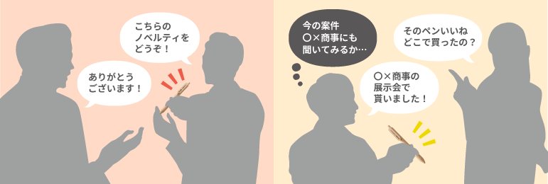 このページでは、展示会でノベルティを配る重要性や、おすすめノベルティと共に、姉妹サイト「ノベルティキング」をご紹介させていただきます!