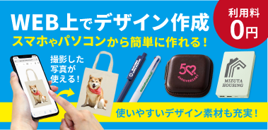 ノベルティキングでは、「WEB 上でデザイン作成」Adobeillustrator での「完全データ入稿」の 2 通りから入稿方法を選択可能です。