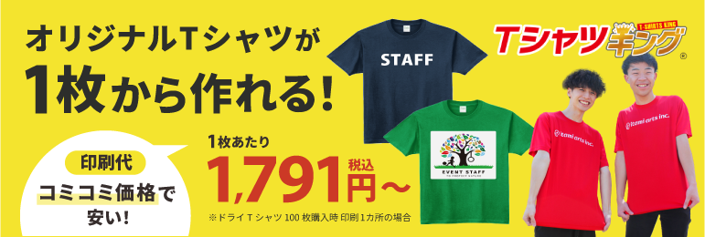 TシャツキングならオリジナルTシャツが1枚から作れる!